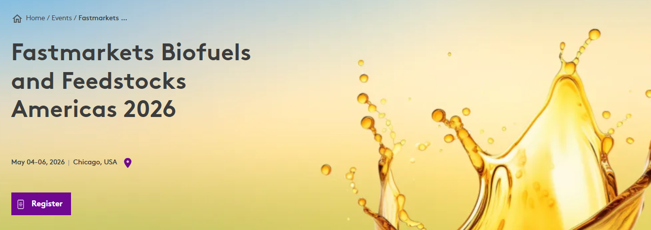 The Fastmarkets Biofuels and Feedstocks Americas conference will take place 4–6 May 2026 in Chicago, USA. It brings together stakeholders across the biofuels value chain — from feedstock producers and refiners to fuel producers, logistics firms, and regulators — to review market trends for feedstocks like soy, canola, palm oil and used cooking oil, and to discuss supply‑chain logistics, traceability, and regulatory developments. It also includes sessions on the expanding sustainable aviation fuel (SAF) market, and offers a “101‑level” workshop for those wanting an introduction to the biofuels and feedstock markets.