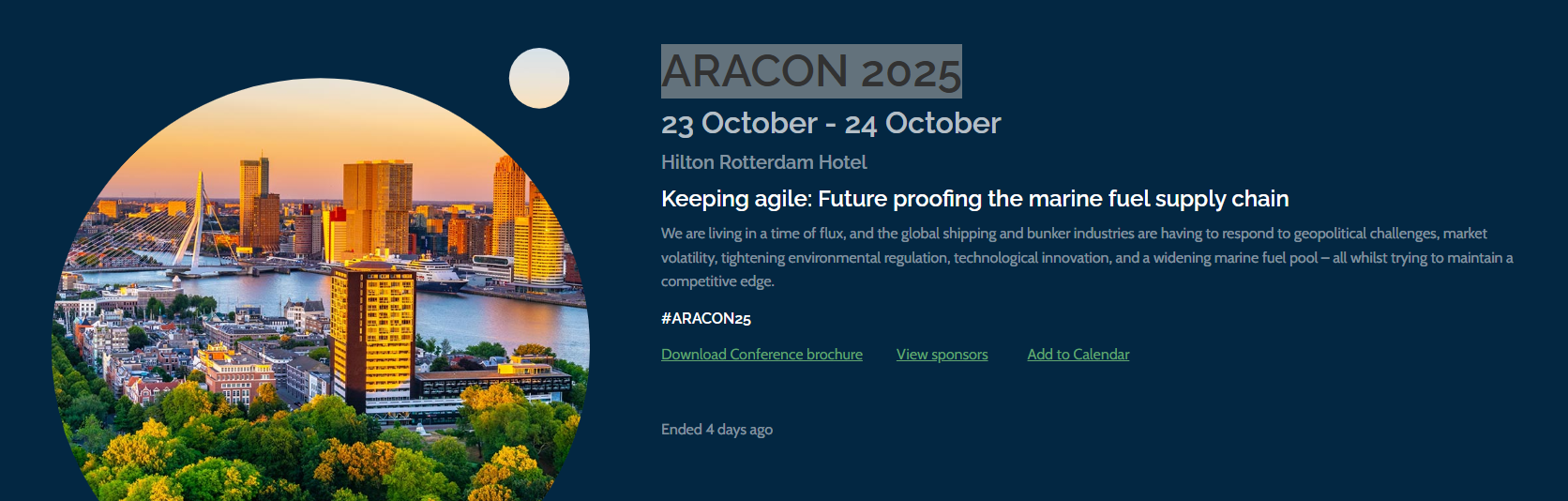 The ARACON 2025 conference will be held 23–24 October 2025 at the Hilton Rotterdam Hotel in the Netherlands Under the theme “Keeping agile: Future proofing the marine fuel supply chain”, the event brings together leading voices in the marine fuels and bunkering industry to explore how players can adapt to regulatory shifts, market volatility, and […]